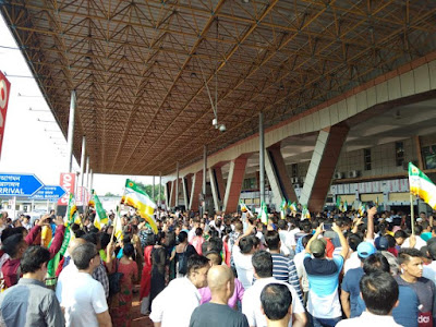 | बाघडुग्रा हवाइअड्डामा विनय तामाङलाई स्वागत गर्न जुटेका समर्थकहरू भीड़। |