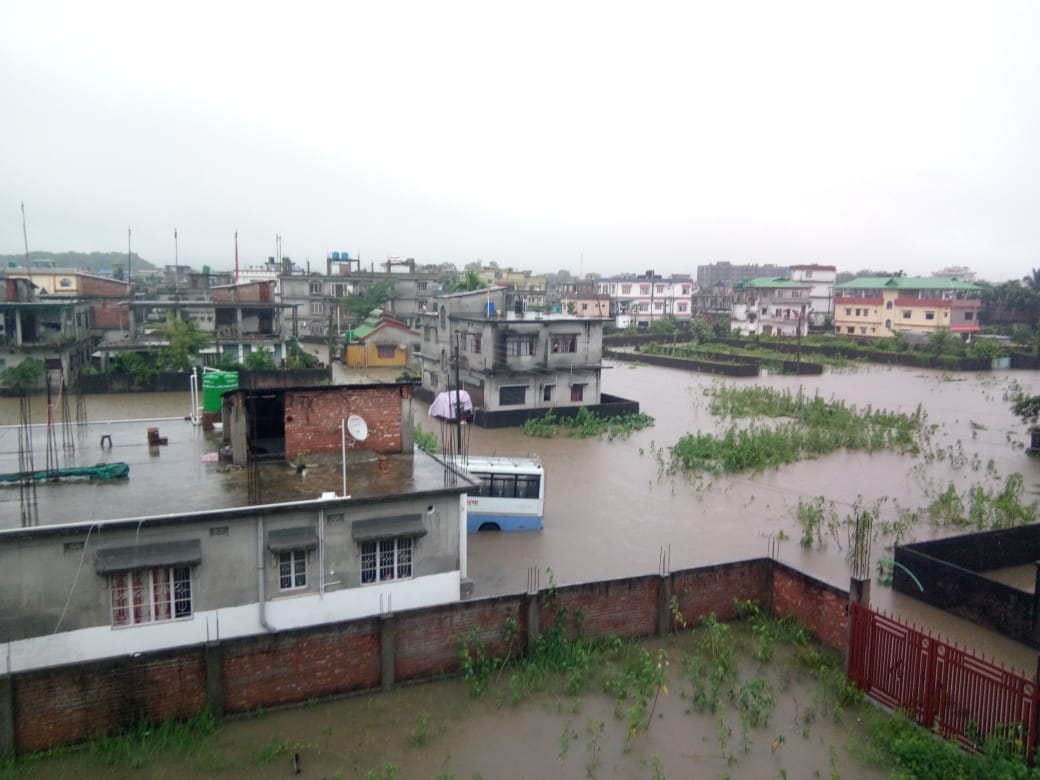 मुसलधारे पानीको कारण जलमग्न बनेको सिलगढ़ी।
