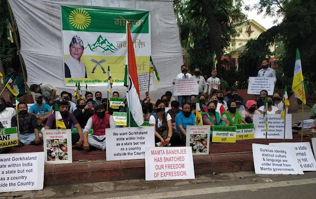 खरसाङ, १० सेप्टेम्बर : विमल गुरुङपन्थी गोर्खा जनमुक्ति मोर्चा (गोजमुमो) –को दिल्ली एनसीआरले दिल्लीको जन्तर मन्तरमा मौन धरना प्रदर्शन गरेपछि दिल्लीलगायत दार्जीलिङ-तराई डुवर्सका गोर्खाल्यान्ड समर्थकहरूमा नयाँ ऊर्जा सञ्चार भएको गोजमुमो दिल्ली-एनसीआरका महासचिव रोशन रामुदामुले बताएका छन्। उनका अनुसार गोजमुमो दिल्ली-एनसीआरले आइतवार गरेको एकदिने मौन धरना प्रदर्शनको कार्यक्रम लरतरो थिएन। यसले विश्वभरि छरिएर बसेका गोर्खाहरूमा छुट्टै राज्य गोर्खाल्यान्ड आन्दोलन र माग अझै जिउँदै रहेको सन्देश गएको छ।