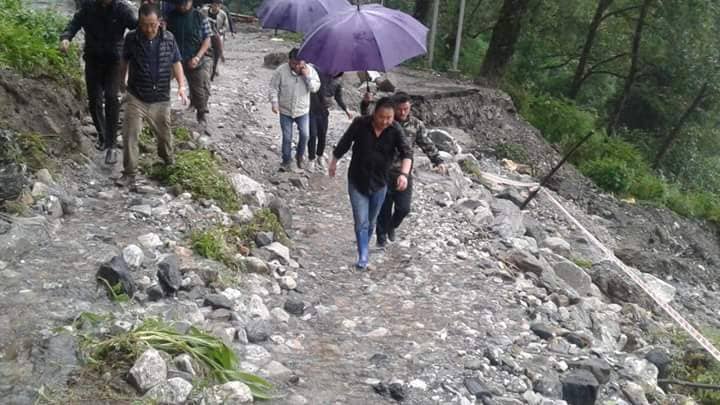 उत्तर सिक्किमको पैह्रोको निरीक्षण गर्न आज राज्यका वन मन्त्री छिरिङ वाङ्दी लेप्चा र सिक्किम विधानसभा उपाध्यक्ष तथा जङ्गुका विधायक सोनाम ग्याछो लेप्चा जङ्गु पुगे। पैदल हिँड़ेर घर–घर पुगी उनीहरूले जनताका हालचाल सोधे अनि राहत वितरणमा प्रत्यक्ष निर्देशन दिए। जङ्गु भ्रमणको क्रममा मन्त्री लेप्चाले हिमाली बेलासँग टेलिफोनिक वार्तालाप गर्दै भने,“म गान्तोकबाट आज सोझै जङ्गु आएको छु। जङ्गु आउन मैले गाड़ी प्रयोग गर्न सकिनँ। धेरै ठाउँमा खोला तर्दै, पैह्रो नाघ्दै जङ्गु पुगें। उत्तर सिक्किमको स्थिति चिन्ताजनक छ। म राज्यवासीलाई अपील गर्दछु–यस विपद्को घड़ीमा राज्यवासीले उत्तर सिक्किमलाई साथ दिउन्। विगतका दिनमा पनि उत्तर सिक्किममा प्राकृतिक आपदा आइलाग्दा राज्यवासीबाट हामीले धेरै सहयोग पाएका छौं, यसचोटि पनि त्यस्तै मानवीय सहयोगको अपेक्षा राख्दछौं।”