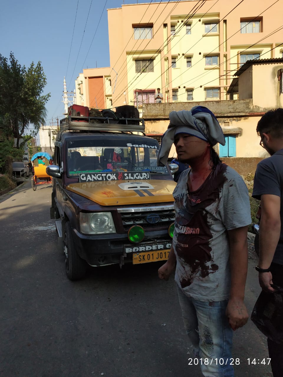 आफ्नो नाम बताउन नचाहने एक प्रत्यक्षदर्शीका अनुसार, काली पूजाको चन्दा उठाउनका लागि केही मानिस आज सिलगढ़ीको सर्किट हाउस नजिक भेला भएका थिए। यात्रुहरू लिएर सिलगढ़ीबाट गान्तोक गइरहेको उक्त गाड़ी उनीहरूले रोके। केही मानिसले गाड़ी चालकलाई 500 रुपियाँ चन्दा मागे, तर चालकले 100 रुपियाँ मात्र दिनसक्ने बताए। केही मानिसले अचानक गाड़ीका चालकलाई गाली गर्नथाले। चालकले गाड़ी कुदाएर भगाउन खोजे। त्यसैबेला आक्रोशित मानिसहरूले ढुङ्गामूढ़ा गर्नथाले। चालकको टाउकोमा ढुङ्गाले लाग्दा उनी गम्भीर घाइते भए। अन्य केही चालकलाई पनि ढुङ्गाले लागेको छ। गाड़ीका केही सीसाहरू पनि फुटेका छन्।