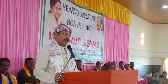 खरसाङमा सम्पन्न एक कार्यक्रमलाई सम्बोधन गर्दै राज्यका पीडब्ल्यूडी मन्त्री अरुप विश्वास।